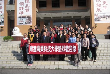 臺灣育達(dá)商業(yè)科技大學(xué)成立于1955年,是一個(gè)規(guī)劃雄偉美麗、學(xué)習(xí)環(huán)境鋪陳的十分人性化的校園。學(xué)校董事長、校長、教導(dǎo)主任在學(xué)校歡迎了我們。董事長在歡迎會上致辭,簡要介紹了育達(dá)商業(yè)科技大學(xué)由“務(wù)實(shí)的傳奇教育家-王廣亞” 創(chuàng)辦的六十余載的創(chuàng)建歷程。在參觀校園中,行政部主任對我們提出的后勤管理和資金來源及使用等方面的問題均作了詳盡和實(shí)在的解答。